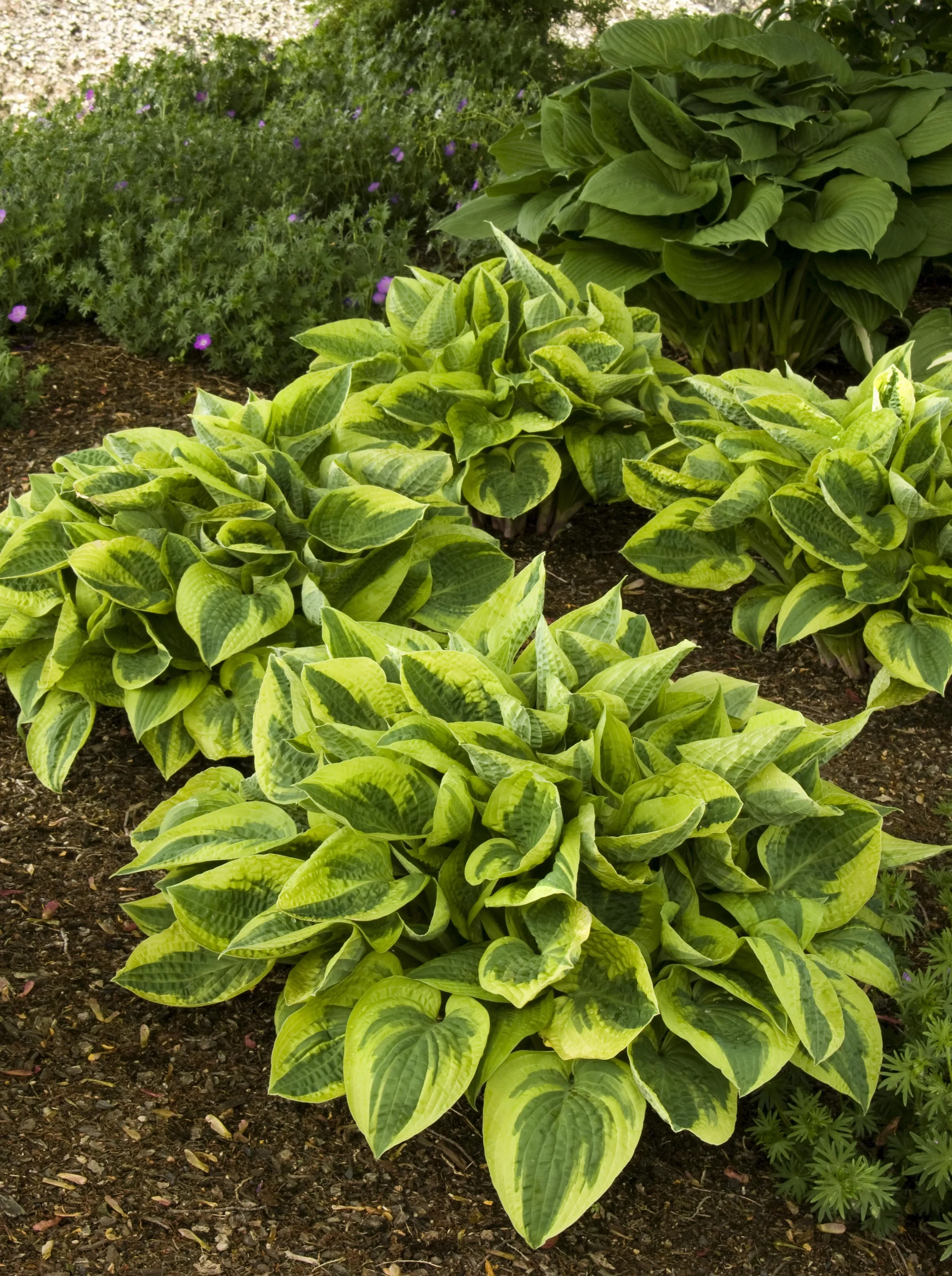 Wide brim Hosta is a large mound of golden-blue foliage that is a perfect accent among other darker foliage plants. It provides colorful interest in shade gardens and is a great selection for backgrounds and mass plantings.
